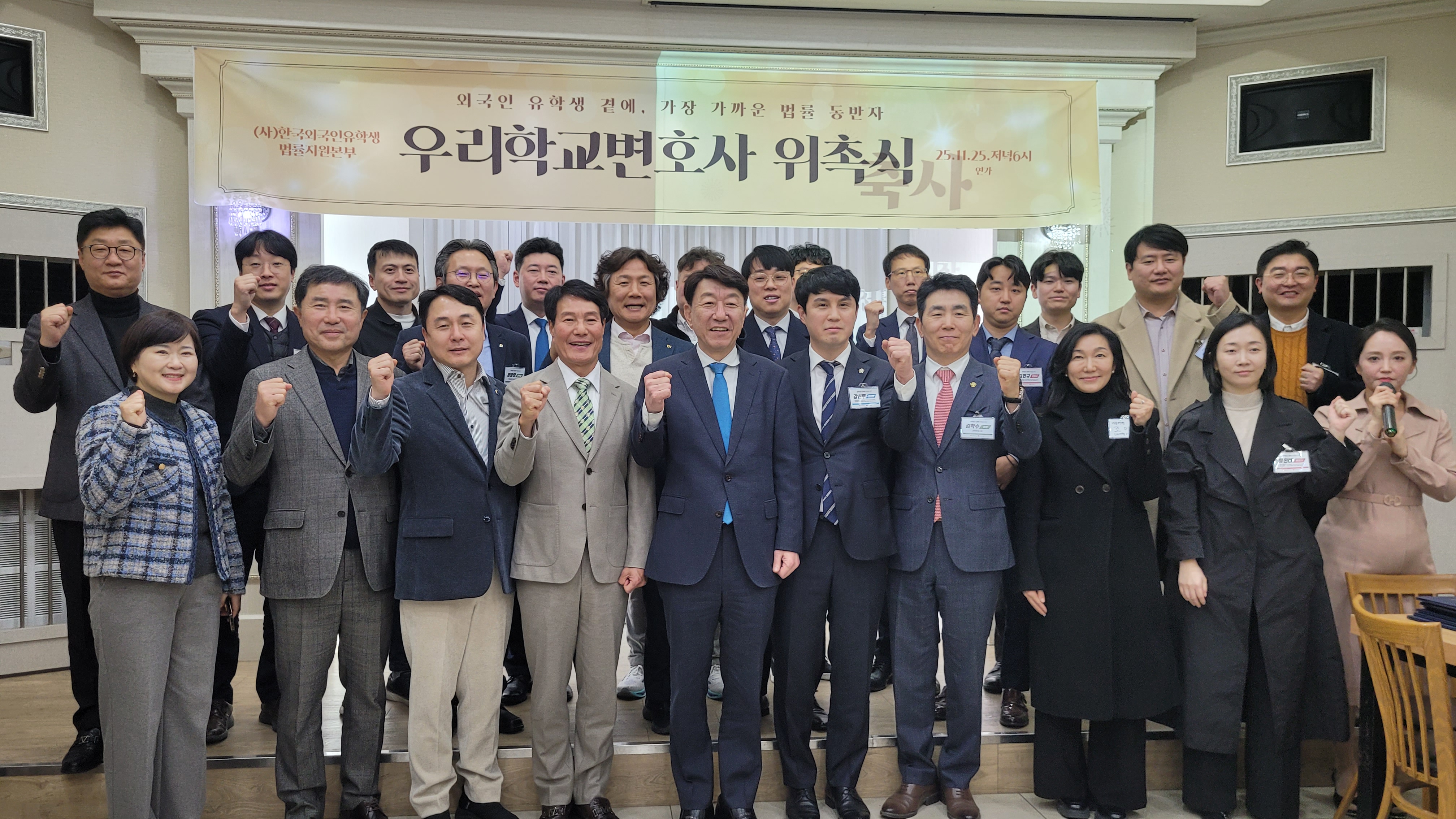 □ (사)한국외국인유학생법률지원본부(이사장 강신무, 이하 ‘법률지원본부’)는 11월 25일(화) 오후 6시 30분, 전주시 중화산동 연가에서 ‘우리학교변호사 위촉식’을 개최하고 외국인 유학생을 위한 캠퍼스 법률 주치의 제도를 공식 출범했다. 법률지원본부가 기획·운영하는 이번 제도는 전북을 시작으로 전국 대학으로 확산을 목표로 하는 공익 법률 네트워크다.
